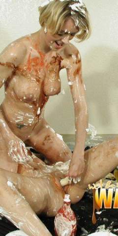 Brittney MG got rubbed down on an inflatable covered with pudding by GungyDave